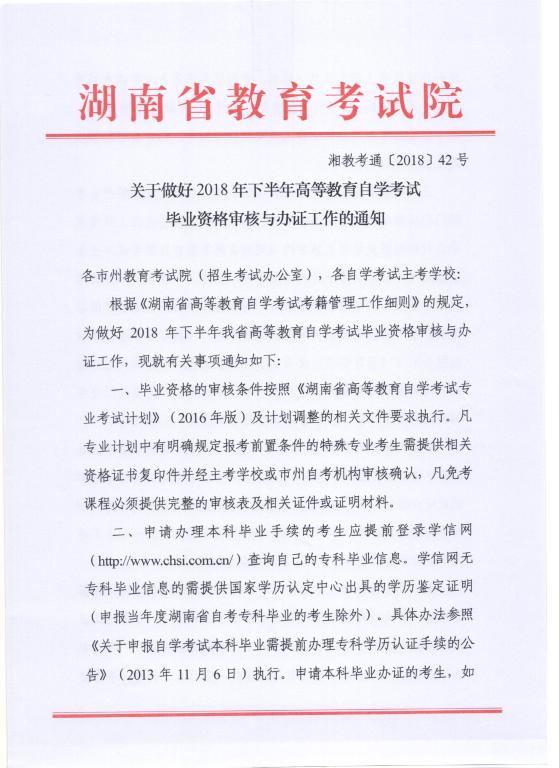 关于做好2018年下半年高等教育自学考试毕业资格审核与办证工作的通知