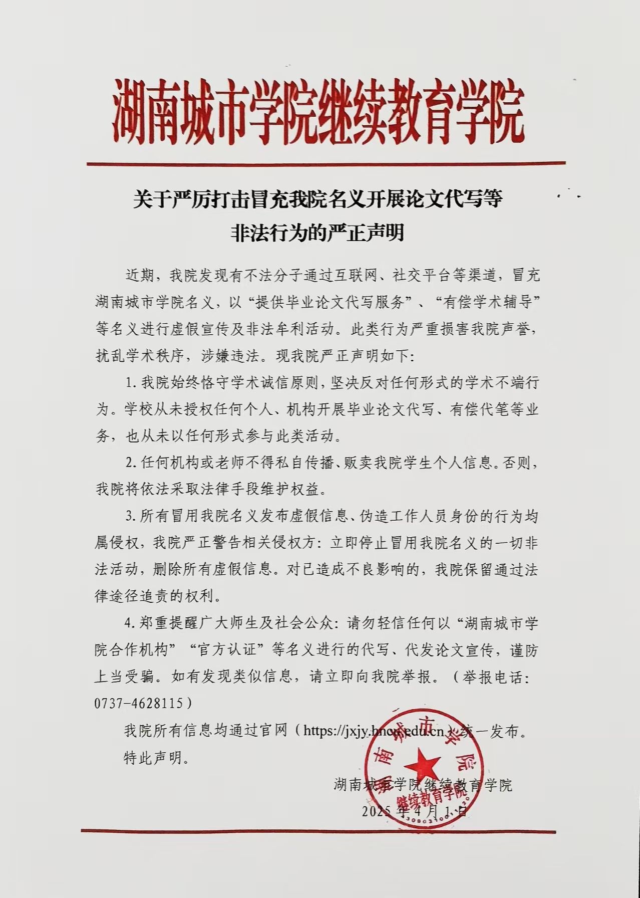 非法行为的严正声明